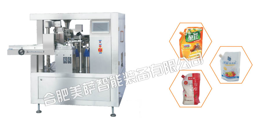 MSA-820Y壶嘴给袋式包装机组,主要适用于100g-5000g,袋宽120mm-200mm,袋长150mm-300mm,适用背封袋、四边封袋、拉链袋、圆底袋、M袋等;运行速度:10-30包/分钟,根据物料的特性而定。