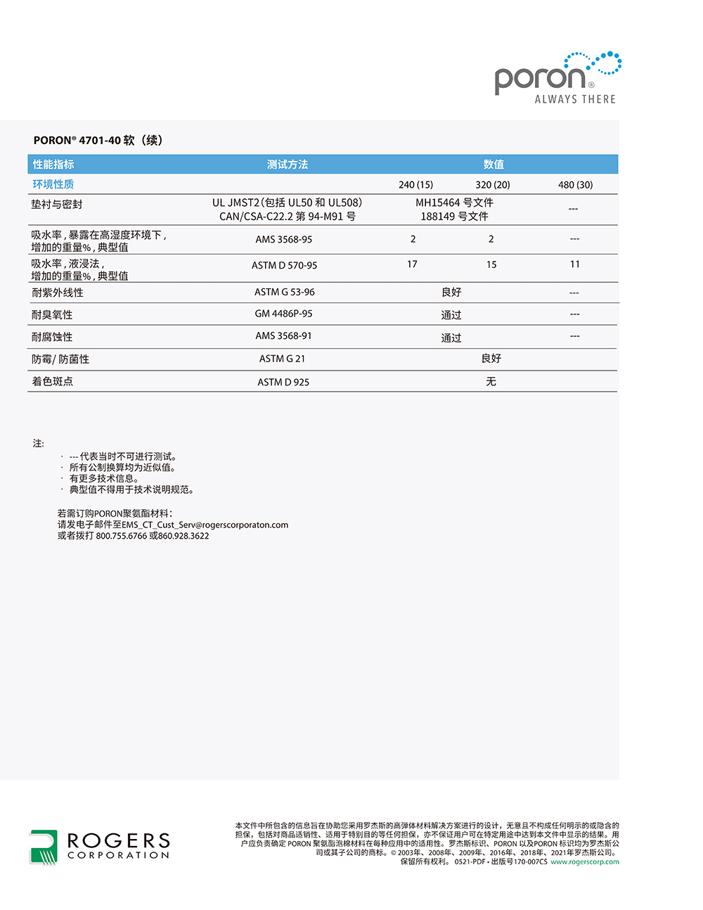 罗杰斯PORON® 4701-40 聚氨酯